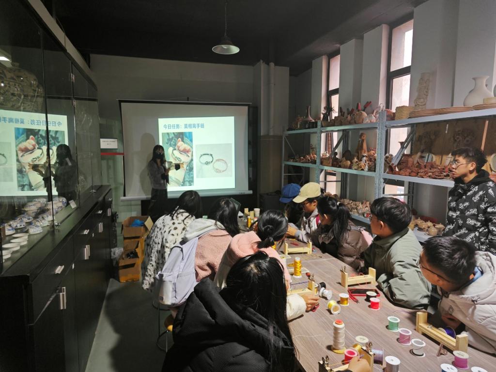 手工编织的培训是由美术与艺术设计学院的何玥菡老师负责,培训开始,何玥菡老师首先介绍了编织技艺的发展历程及其在日常生活中的应用。她指出,编织不仅是一种传统手工艺,更是一种文化传承和创新的体现。通过展示不同种类的编织作品,她激发了学员们对手工编织的浓厚兴趣。为了更直观地展示编织技艺,何玥菡老师以“莫相离”手串为案例,详细讲解了编织的步骤和技巧。随后,她逐步演示了如何运用这些材料和工具,通过巧妙的编织手法,打造出独具匠心的“莫相离”手串。过程中,学员们纷纷动手实践,尝试编织自己的“莫相离”手串。培训结束后,他们纷纷表示,这次培训不仅让他们学会了编织技艺,更让他们感受到了传统文化的魅力和手工制作的乐趣。
