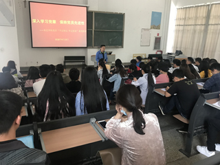 罗进同志首先对学生党员在过去良好的学习和行为表现给予了充分肯定和表扬,并希望广大学生党员深入学习新党章,不忘初心,牢记使命,一如既往的严格要求,在学习和工作中充分发挥党员的先锋模范作用。其次,罗进同志结合对新党章的学习,通报了近期国内外的时政热点事件。他要求学生党员要正确把握当前社会热点、焦点问题,避免误读误判,要冷静观察,理性对待,切勿人云亦云。最后,罗书记要求学生党员要了解今年我校审核评估等重点工作任务,积极配合老师完成相关工作,为学校的发展贡献出自己的一份力量。