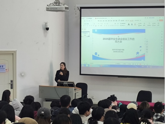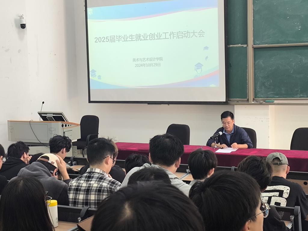 为深入做好毕业生就业创业工作,10月29日,我院在美术楼报告厅举行了2025届毕业生就业创业工作启动会,学院党委书记李正红、党委副书记张晓鸥、就业辅导员、毕业班班主任以及2025届全体同学参加了会议。